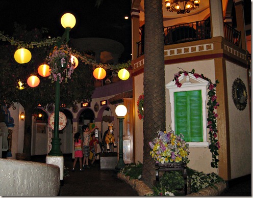 I read this one in Denver can feed 900 people at once. Seriously! It’s designed to be make you feel you’re eating in a Mexican village during a fiesta. You’ll find a waterfall with real live cliff divers, a strolling mariachi band, gunfighters, and, inexplicably, a stage show involving a man in a gorilla suit. And that’s without mentioning the old-time photo studio, arcade, cotton candy machine, and gift shop. Here are the hooligans on the bridge behind the waterfall.